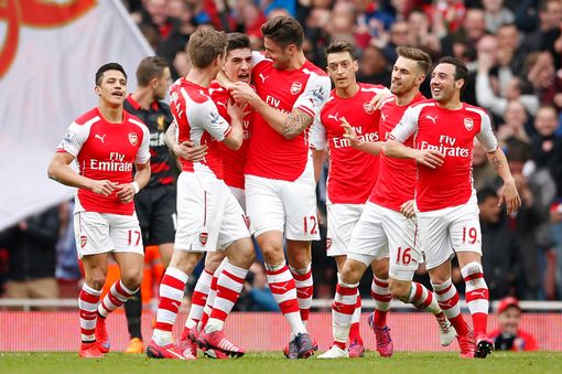 Arsenal menggeser posisi Manchester City di peringkat kedua klasemen sementara Premier League usai mengalahkan Liverpool 4-1 di Stadion Emirates, Sabtu (4/4/2015).