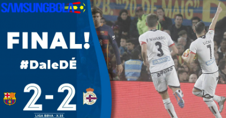 Kemenangan Barcelona yang sudah di depan mata harus sirna setelah pemain Deportivo, Alex Bergantinos, mampu menjebol gawang Claudio Bravo pada menit ke-86.