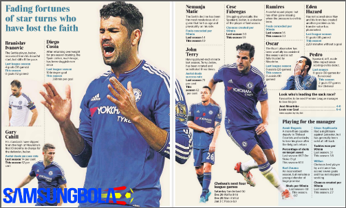 Berada di peringkat ke-16, Chelsea pun dikabarkan sudah menggelar rapat genting untuk membahas masa depan pelatih mereka, Jose Mourinho yang juga dirumorkan sudah kehilangan wibawanya di kamar ganti Chelsea. Namun daripada fokus kepada sang pelatih, The Times lebih menunjukan penurunan perfoma para bintang Chelsea musm ini.