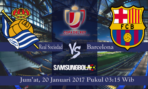 Tim raksasa Barcelona akan berjuang keras demi mempertahankan gelar juara Copa Del Rey mereka musim ini. Barcelona harus menghadapi tim Real Sociedad di leg pertama perempat final Copa Del Rey 2017 yang akan diselenggarakan pada Stadion Anoeta, Pada hari Jum'at, Tanggal 20 Januari 2017 pukul 03:15 Wib.