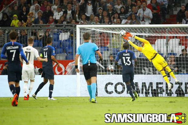 Timnas Jerman bermain imbang tanpa gol melawan Prancis pada laga pembuka UEFA Nations League atau Liga Bangsa-Bangsa Eropa di Allianz Arena, Jumat (7/9/2018) dini hari WIB. Tuan rumah kesulitan menjebol gawang tim tamu lantaran Alphonse Areola tampil cemerlang di pertandingan ini.
