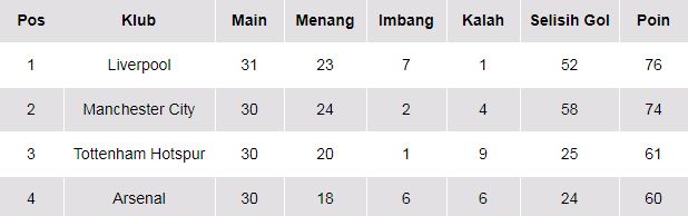 Tidak ada gol tambahan tercipta di sisa laga. Meski cuma menang tipis 2-1, Liverpool sukses kembali ke puncak klasemen dengan 76 poin dari 31 laga.