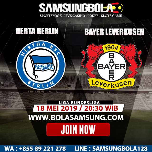 Samsungbola - Prediksi Hertha Berlin Vs Bayer Leverkusen 18 Mei 2019 Pada hari Sabtu, 18 Mei 2019 pukul 20:30 waktu indonesia barat akan di adakan laga pertandingan Liga Bundesliga antara Hertha Berlin Vs Bayer Leverkusen. Pertandingan ini nantinya akan di laksanakan di Stadion Olimpiade Berlin.