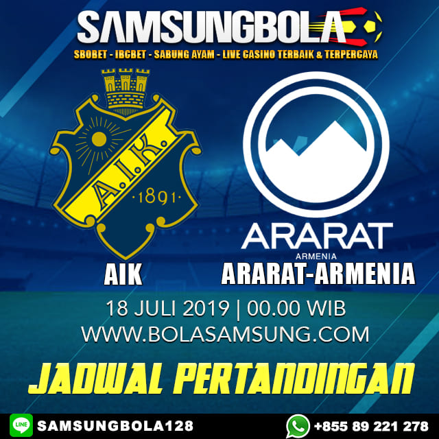 Samsungbola - Prediksi Bola AIK Vs ARARAT-ARMENIA Dalam pertandingan kali ini akan diadakan pada tangga 18 juli 2019 disalah satu stadion terbesar yaitu Friends Arena (Solna) dimana dalam pertandingan kli ini akan mempertemukan dua tim yang memiliki kekuatan yang sama dan membuat setiap tim akan memiliki ambisi yang sangat membuat pertandingan kali ini akan sayang untuk dilewatkan, dalam pertandingan kali ini akan mempertemukan aik melawan Ararat.