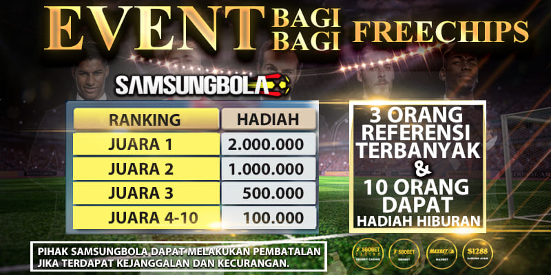 SAMSUNGBOLA mengadakan event bagi-bagi chip gratis. 3 orang dengan referensi terbanyak dan 10 orang mendapatkan hadiah hiburan.
